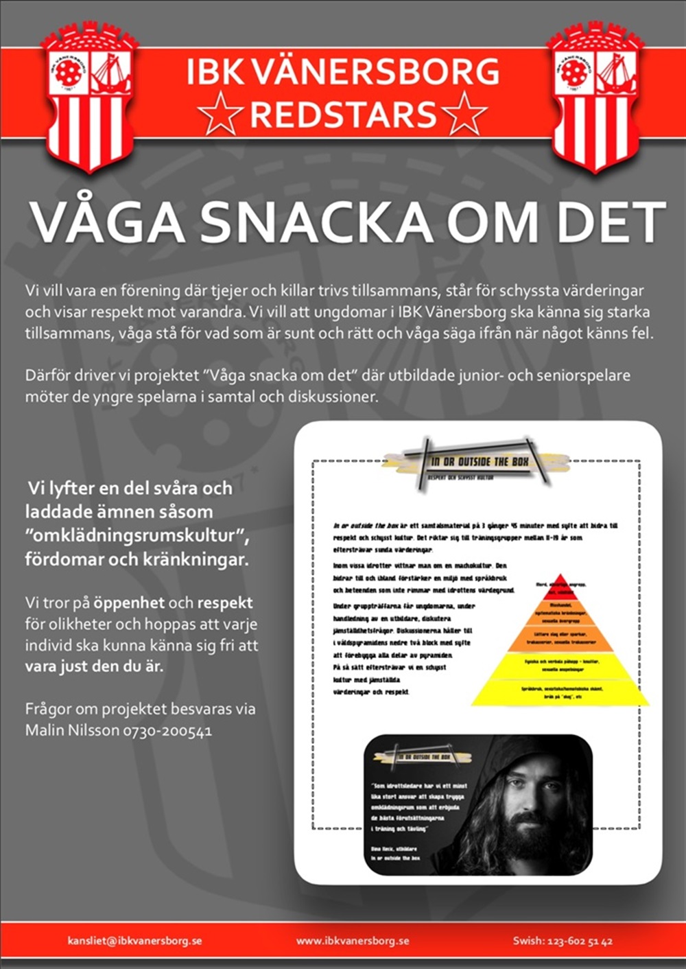 Våga snacka om det är ett projekt som syftar till öppenhet, omtanke och respekt bland unga och vuxna i vår förening.